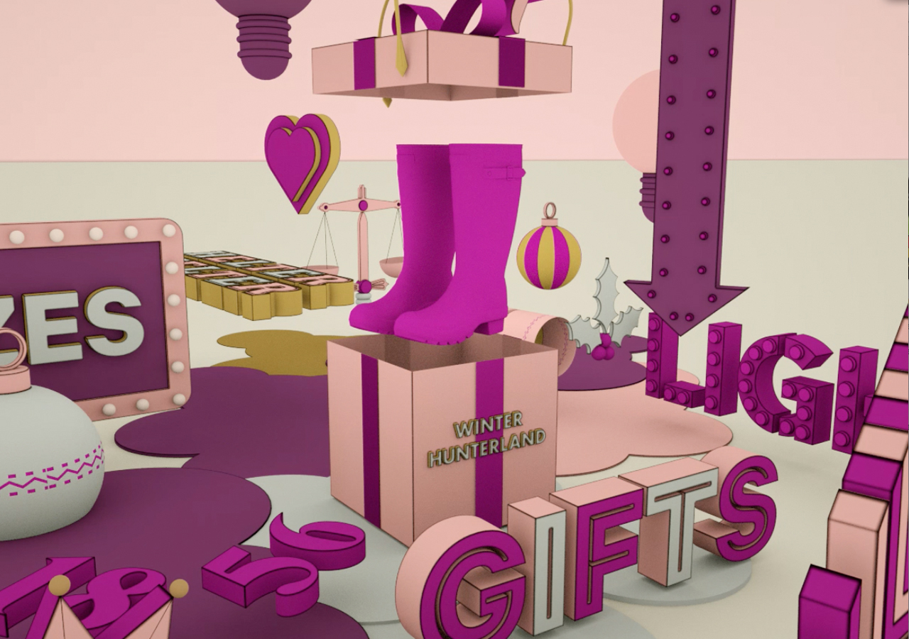 Christmas campaign for Hunter Boots covering store windows, wrapping paper and instore graphics as well as animation.